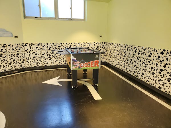小朋友:兒童超市,積木牆。大朋友:手足球檯,大型電玩。